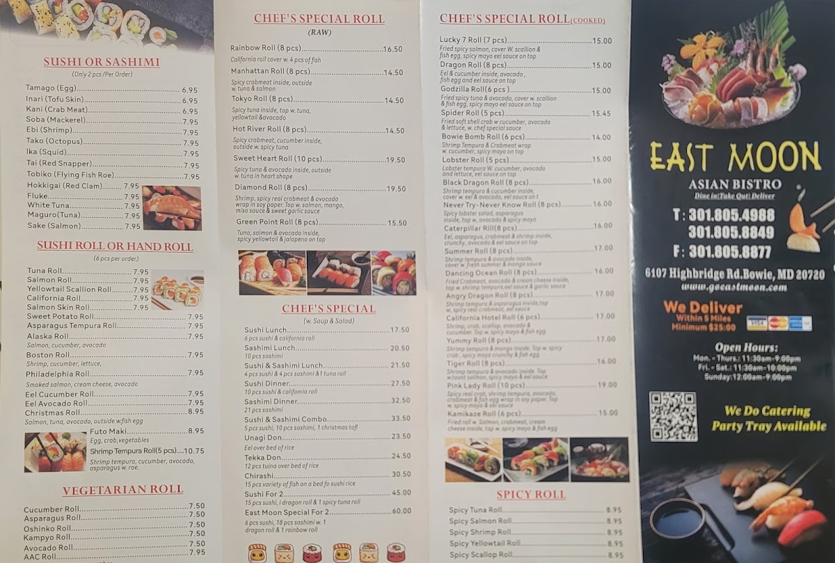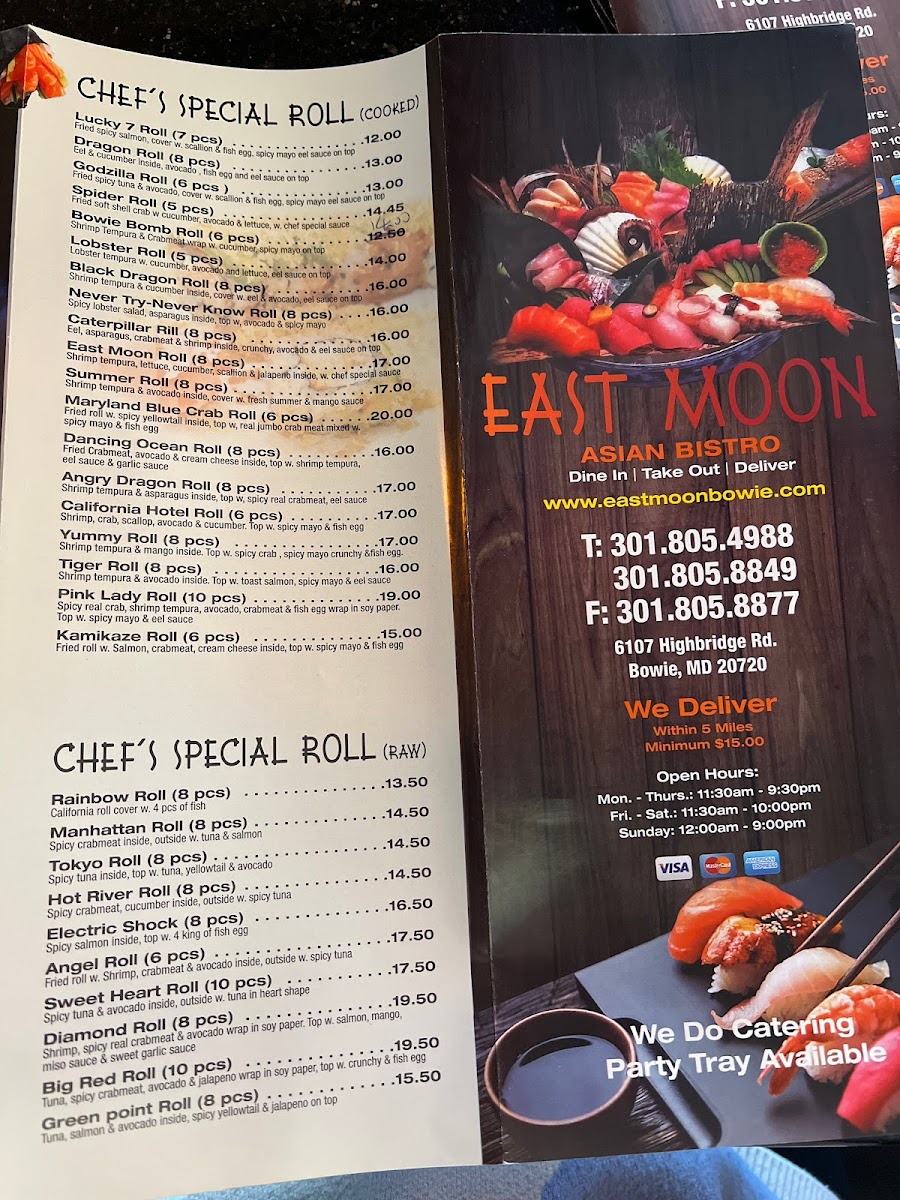 The menu at East Moon Asian Bistro offers a diverse selection of flavorful dishes that cater to various tastes, making it a standout spot in Bowie, MD. The Orange Chicken is a fan favorite, offering a tangy, sweet coating that pairs beautifully with crispy chicken, creating a perfect balance of flavor and texture. For those looking for a lighter option, the Chicken Lettuce Wraps provide a refreshing and crunchy choice, complemented by savory fillings.